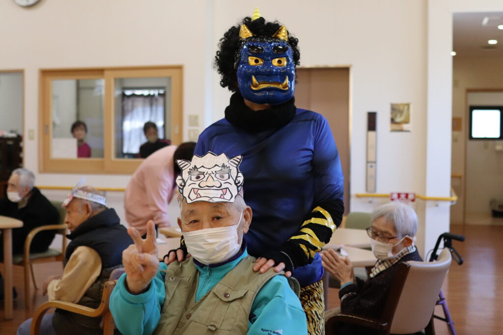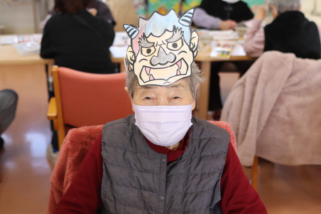 他にも、鬼のお面を作って2月3日の節分では、みんなで鬼のお面をかぶって写真撮影をしました✨